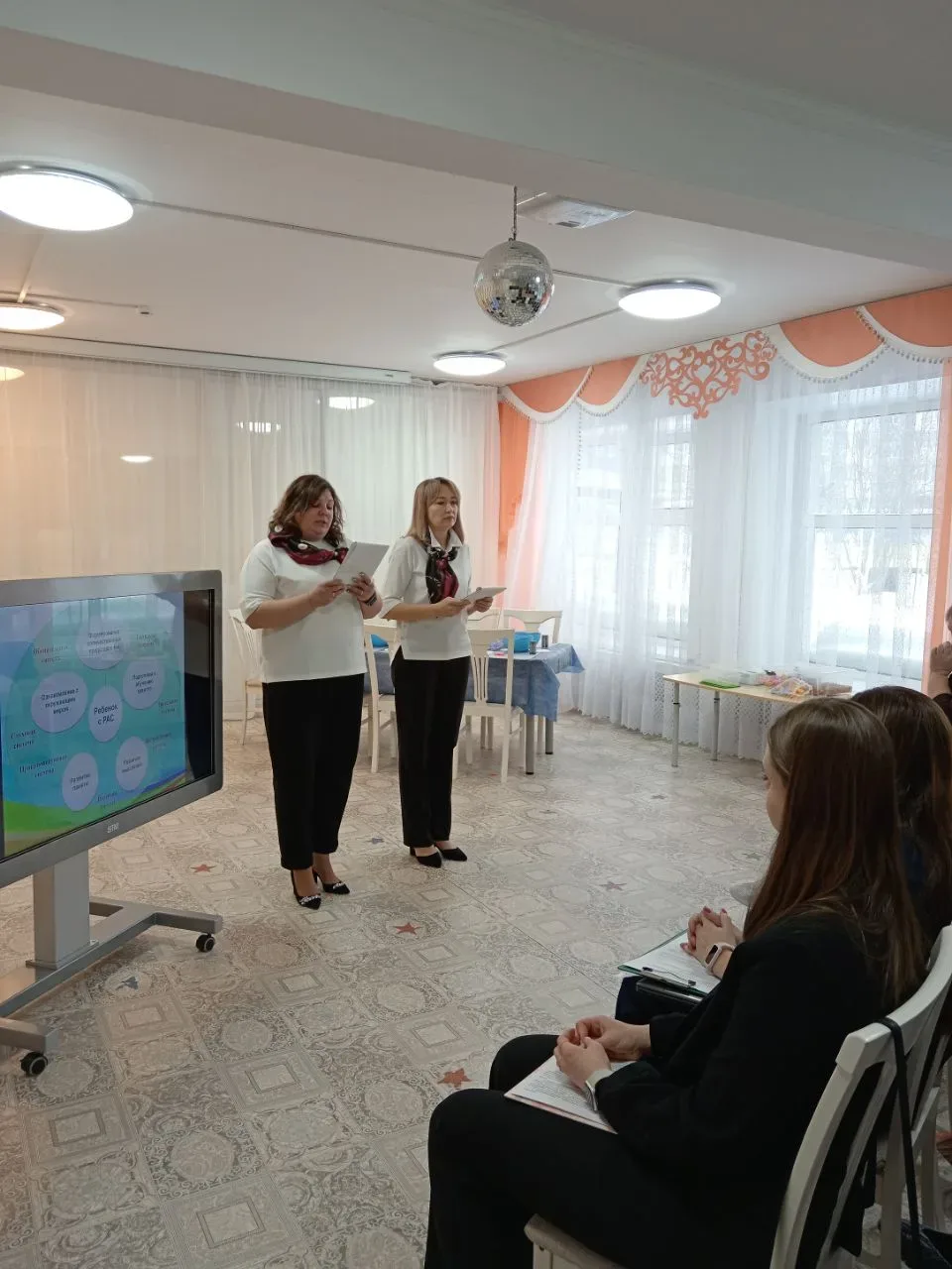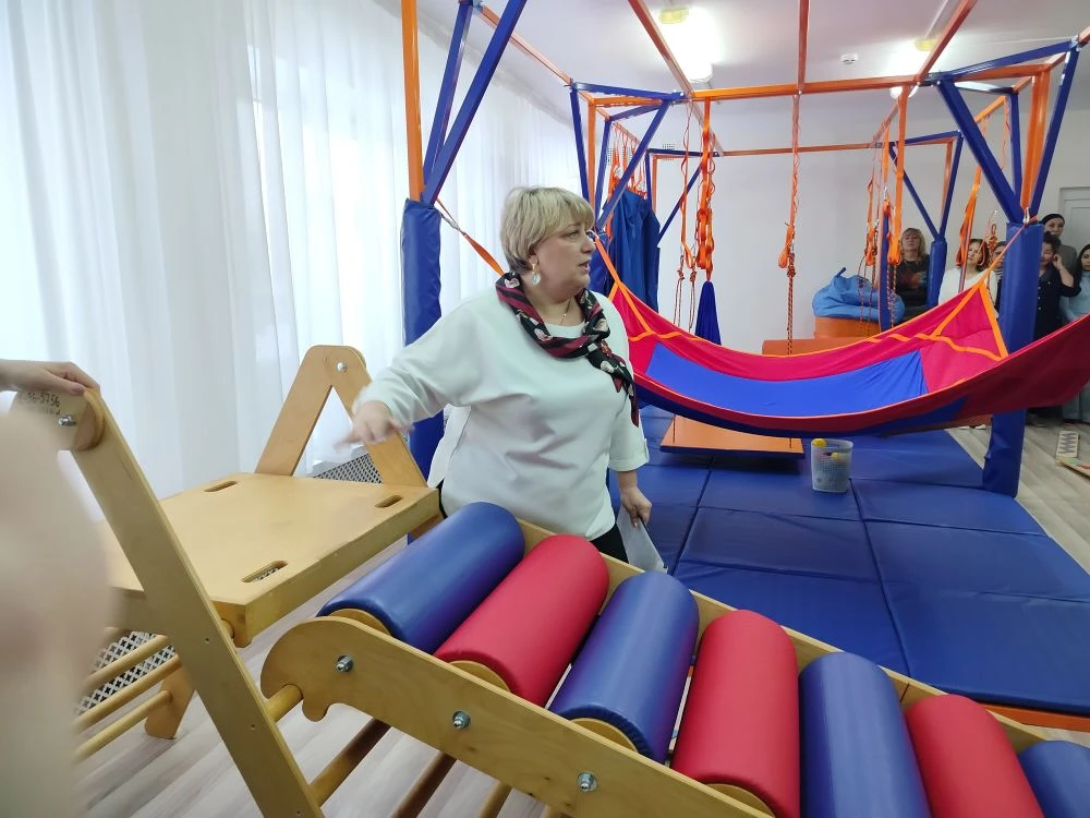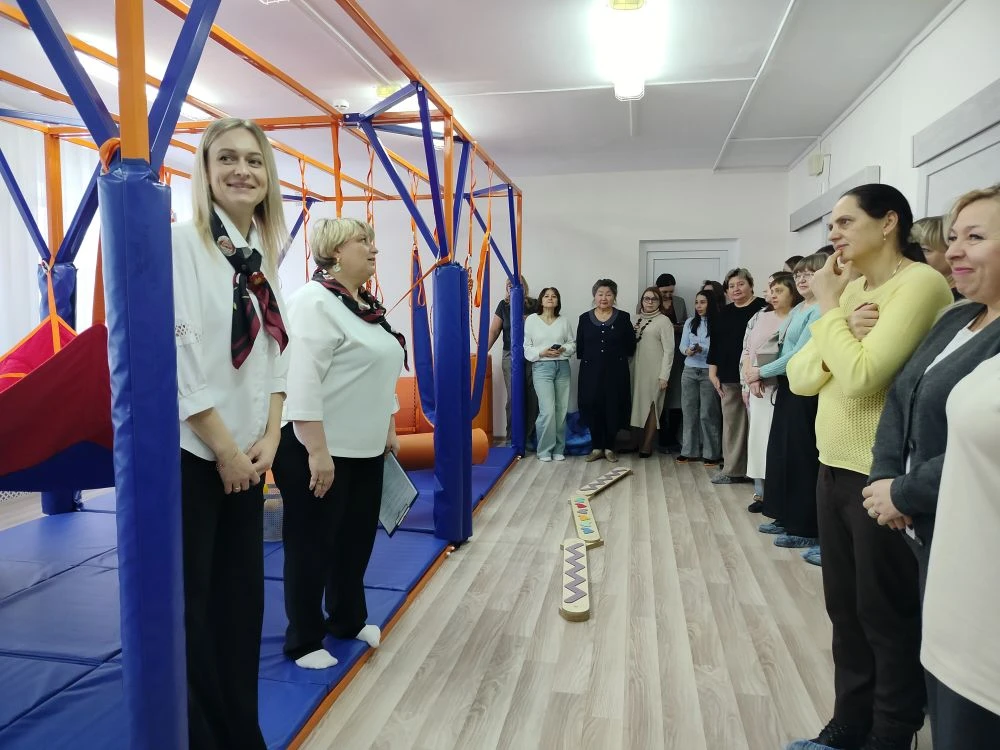 Также специалисты показали на практике оборудование сенсорной комнаты и приемы работы с оборудованием.