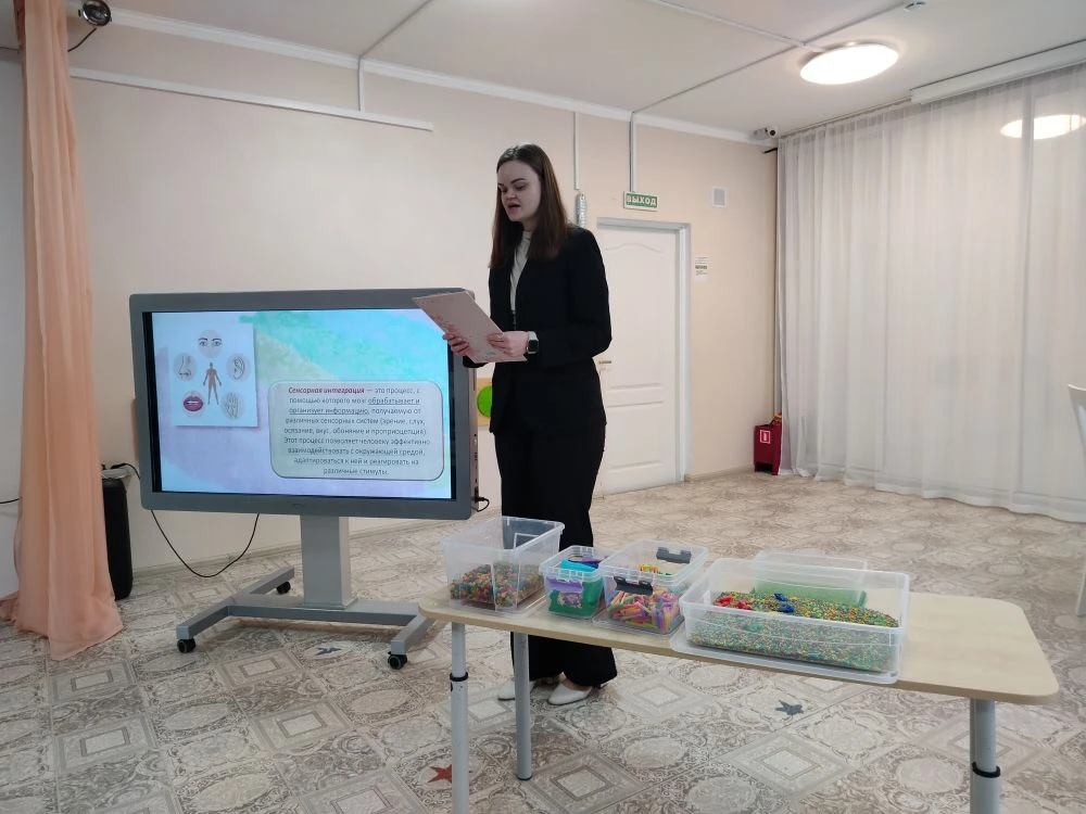 «Что такое сенсорная интеграция и почему она ключевая для детей с РАС» рассказала учитель – логопед Худякова Е.А., учитель-логопед Самуль С. А. познакомила с ключевыми сенсорными системами, участвующими в сенсорной интеграции.