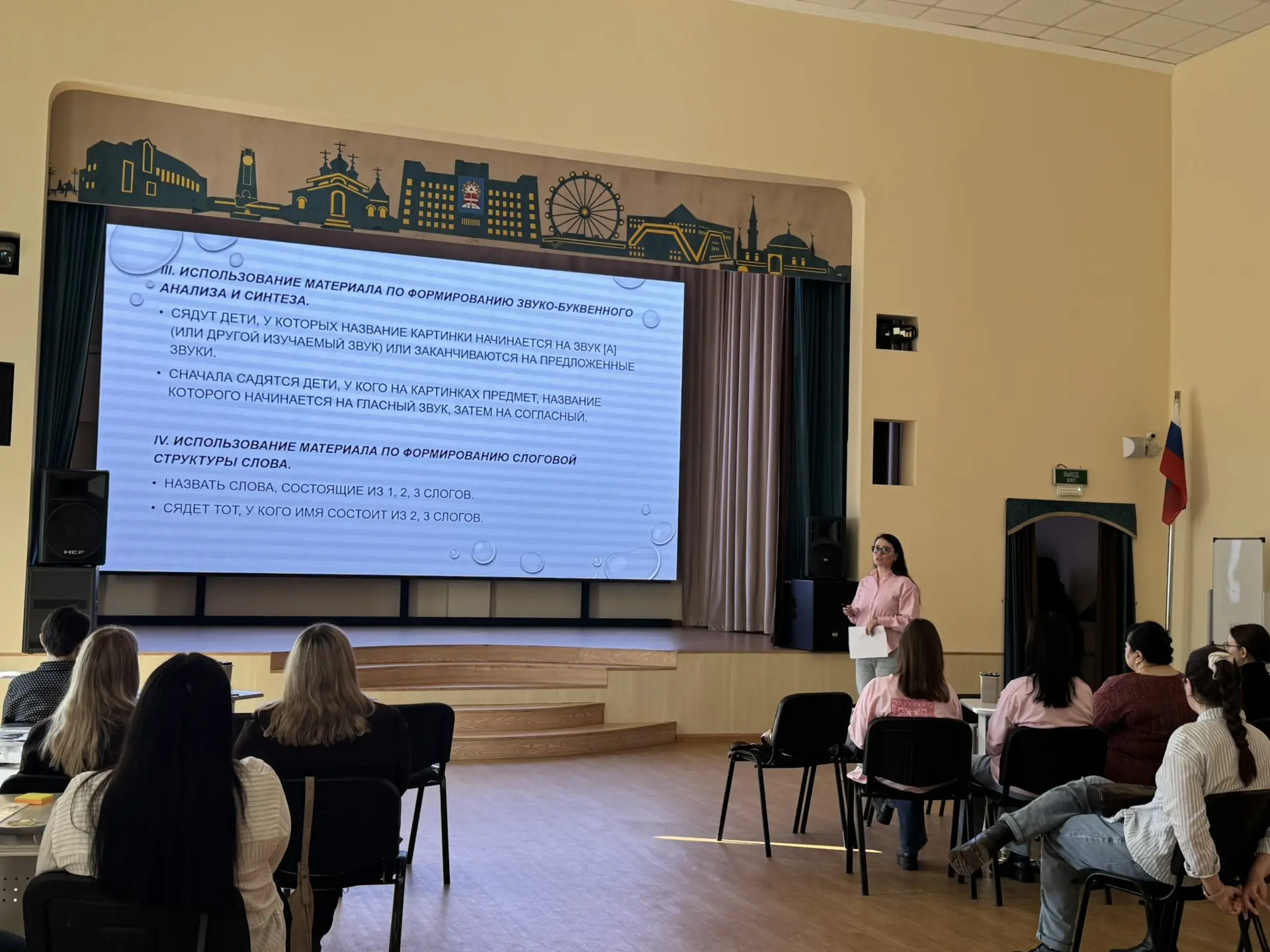 Коллеги представили многофункциональные игры, акцентировав внимание на их использование на разных этапах занятия. Чех Л.Д., учитель-логопед МБОУ СОШ №8, поделилась игровыми вариантами проведения организационного момента, являющегося своеобразным «камертоном» предстоящей деятельности. Лобастова Е.Л., учитель-логопед МАОУ СОШ №2, проводя речевую разминку, активно использует артикуляционные кубик, лабиринты и дорожки. Если кубик вносит в занятие элемент игры и варианты выбора, то использование артикуляционных лабиринтов и дорожек, позволяет отработать качественное удержание позы. Долбнякова А.А., учитель-логопед МБОУ СОШ №10, на этапе введения в тему с легкостью адаптирует материал под лексическую тему, уверенно двигается с детьми по траектории: от тела к символу, сочетая телесные ощущения, игровую метафору и моторное программирование. Путь к результату в освоении темы, по мнению Гезик Е.А., учителя-логопеда МБОУ СОШ №6, строится на двух китах: «Инсайте» (глубинном понимании первопричины) и «Флагманских решениях» (комплексном, системном подходе). Не просто учим правила, а выстраиваем новые нейронные связи во время игр. Как создать инклюзивный игровой контент с помощью ИИ-конструктора знает Бабичева Д.Д., учитель-логопед С(К)ОШ. Представленная игра «Подбери букву!» удобна в использовании, подходит для отработки пройденного на занятии материала. Многофункциональными играми на развитие слухового внимания во время динамической паузы поделилась Дружинина Т.В., учитель-логопед МАОУ СОШ №2. Время двигательной активности дети воспринимают как отдых, а логопед как инструмент коррекции. Дети учатся не только слышать и слушать, но и реагировать. Викулина Л.В., учитель-логопед Гимназии №1, для повышения эффективности логопедического воздействия на разных этапах занятия активно использует игры: «Логопедическое домино», игра-квест «Собери пазл», игра-ходилка «Шаг за шагом», «Читай-пиши без ошибок». Продемонстрированные игры многофункциональны, имеют гибкие задания и варианты правил, что позволяет их адаптировать под разные цели занятия. Своими приемами рефлексии поделилась Гезик Е.А., которая знает, как этот этап занятия разнообразить, удивить детей и предоставить им возможность ощутить себя в новой роли.