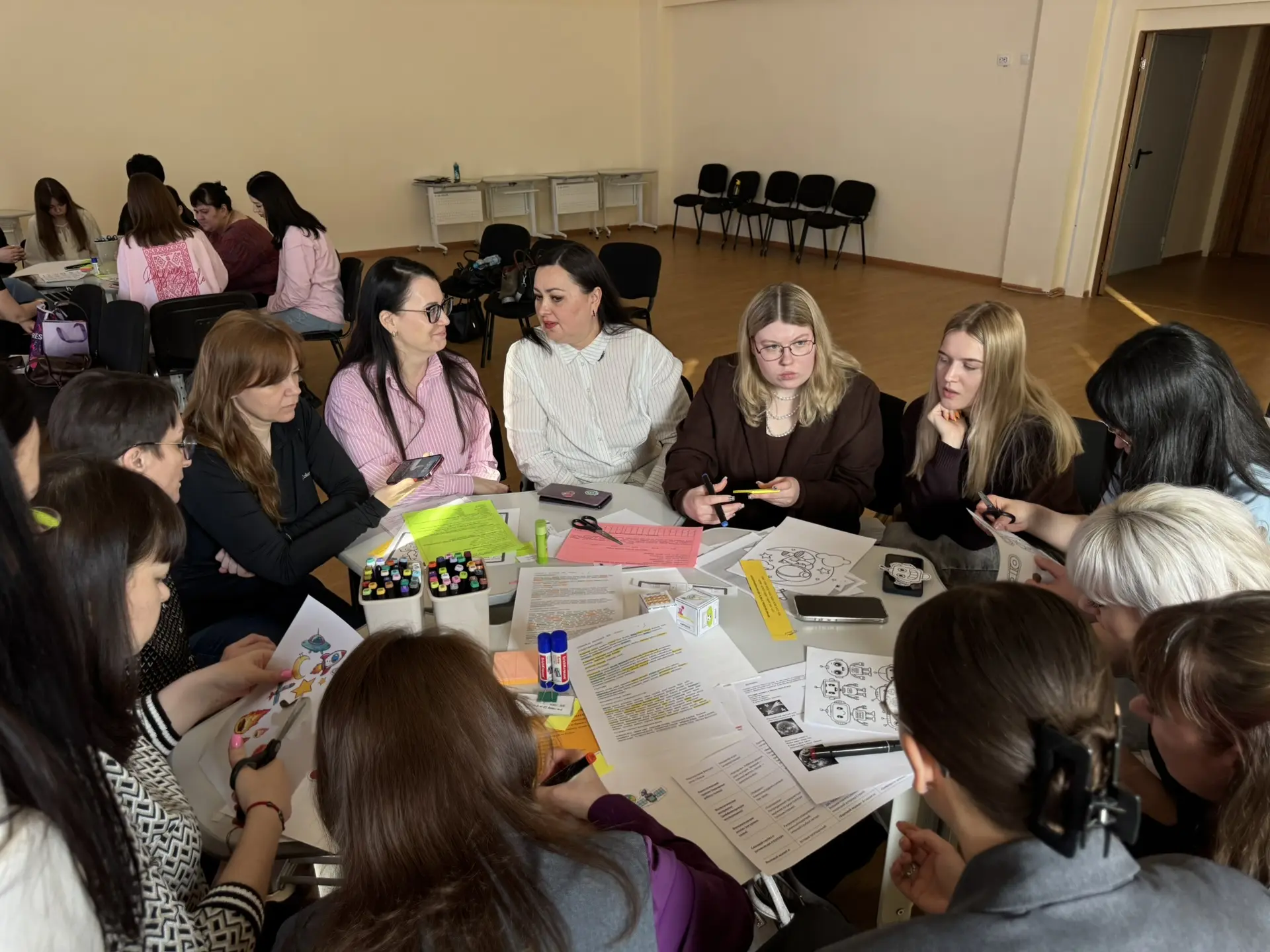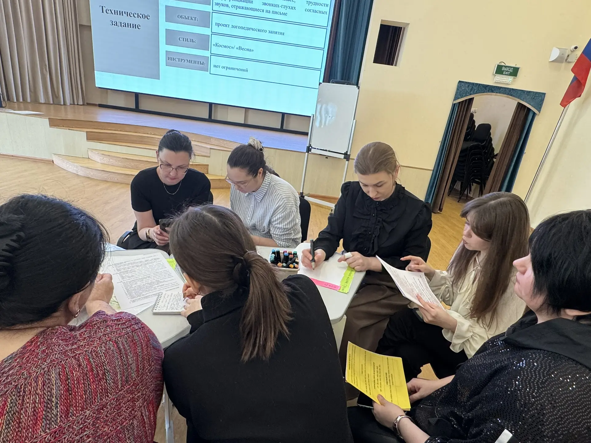 Во время практической части педагоги объединились в группы и создали проект логопедического занятия, интегрируя представленные сегодня игры и упражнения. Демонстрируя свои проекты, коллеги проявили мобильность, креативность и профессионализм.