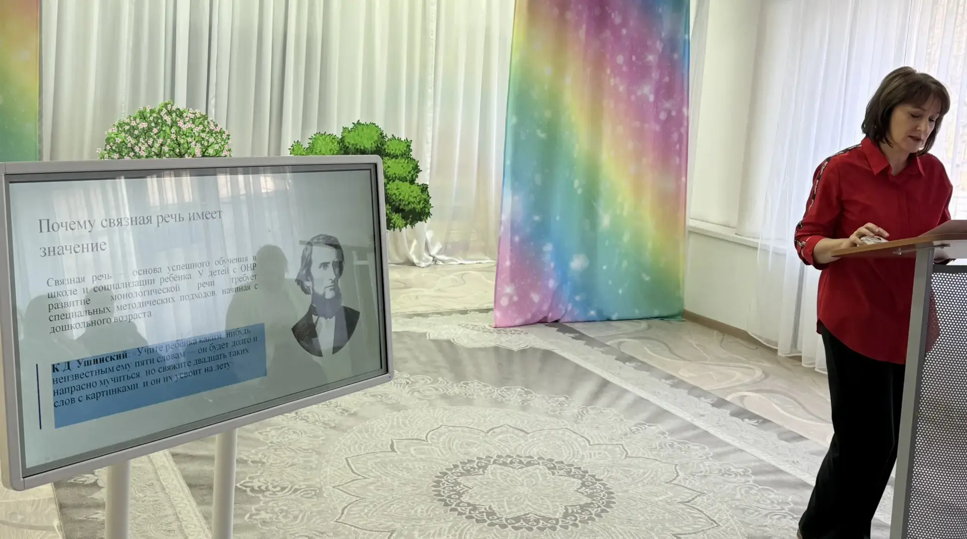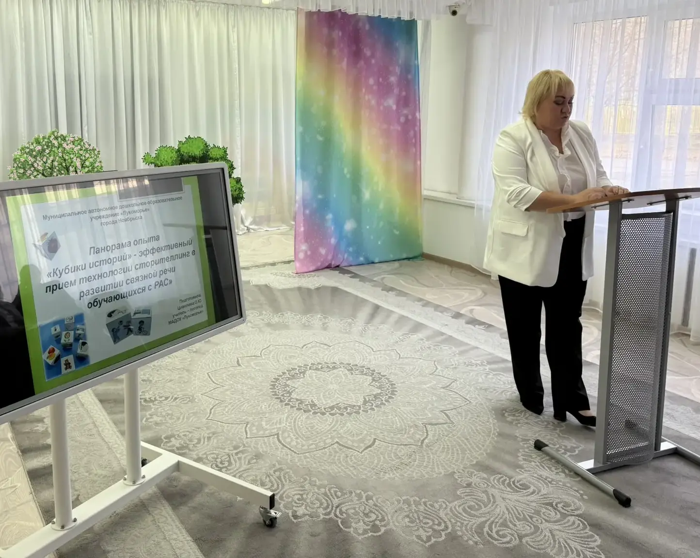 Цивилева Оксана Юрьевна предоставила опыт работы по технологии сторителлинг в развитии связной речи обучающихся с РАС». Данная технология открывает уникальную возможность для обогащения и актуализации словаря детей, помогает научить обучающихся с ОВЗ составлять как простую фразу, так и связный творческий рассказ. Импровизированные истории вызывают наибольший интерес, обогащая лексику, развивая логику и навык связного высказывания.